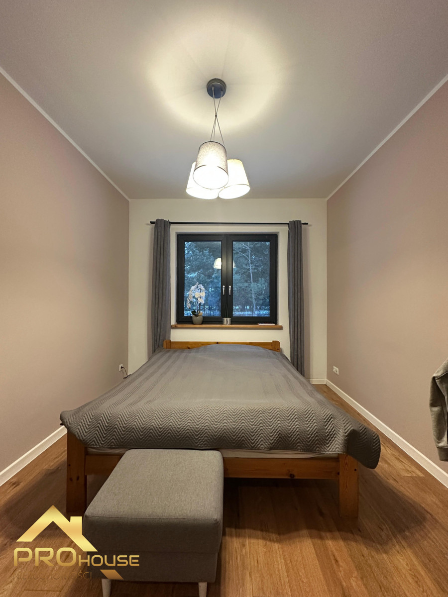 To prawdziwa perełka — za płotem rozciąga się sosnowy lasek, który zapewnia prywatność i wyjątkowy klimat przez cały rok. W ogrodzie czeka idealnie utrzymana trawa z automatycznym nawodnieniem, tworząca piękną, zieloną przestrzeń do wypoczynku.