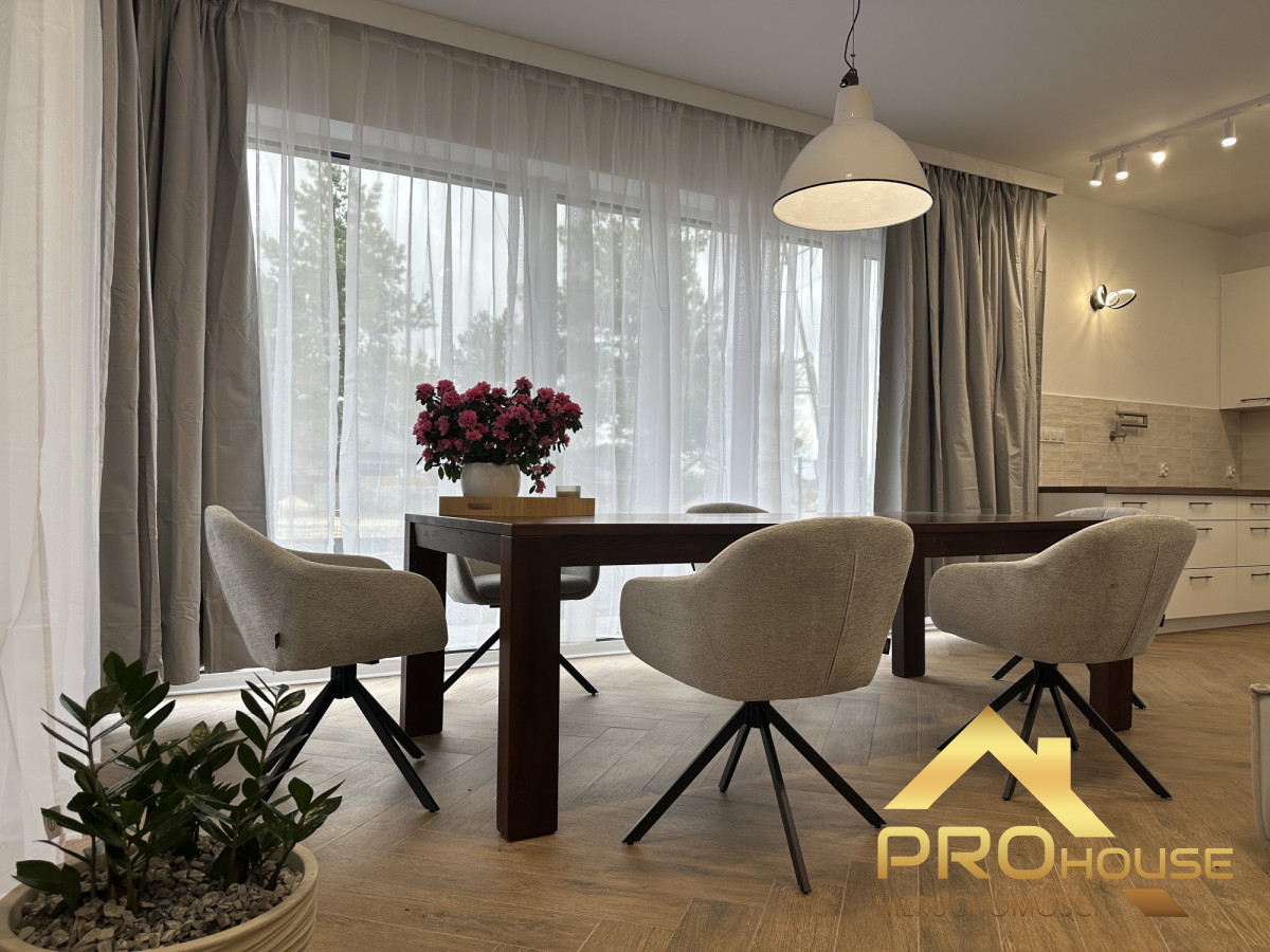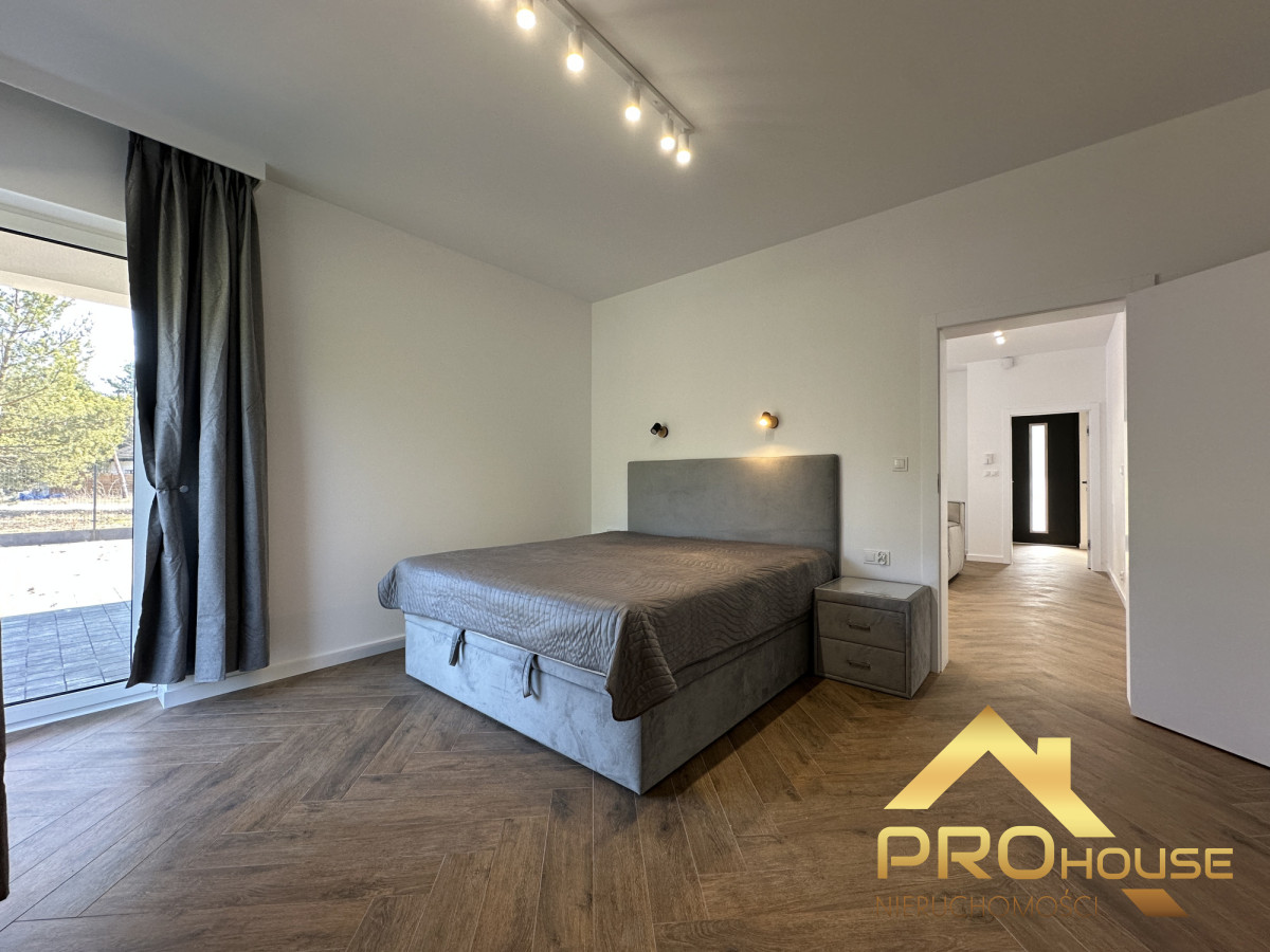 Kupujący otrzymuje nieruchomość wykończoną w wersji "pod klucz", wyposażoną w meble i sprzęty AGD, w tym dużą lodówkę "Side by Side" - zgodnie z załączonymi do ogłoszenia zdjęciami. Dom został zaprojektowany z dbałością o detale i jest wyposażony w nowoczesne rozwiązania. Zastosowano w nim wiele ciekawych rozwiązań aranżacyjnych. Pomieszczenia są doskonale doświetlone poprzez zastosowanie dużych okien, które ozdobiono efektownymi tkaninami. Przewidziano także w pokojach wnęki na szafę. Z każdej sypialni jest możliwość bezpośredniego wyjścia do ogródka.