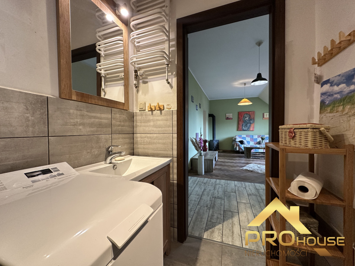 Sprzedawane jest z umeblowaniem i sprzętami AGD (pralka, lodówka, kuchenka gazowa, piekarnik).