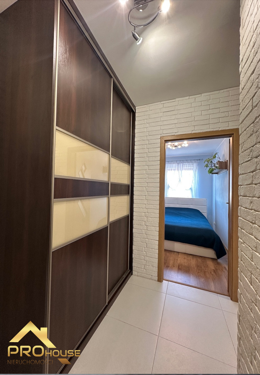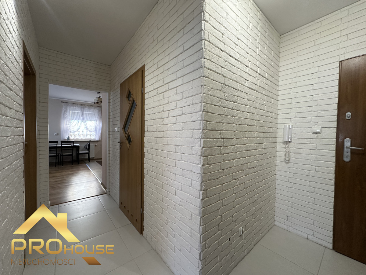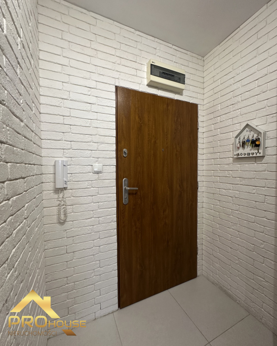 W cenie mieszkania pozostaje nowoczesna zabudowa kuchenna z piekarnikiem i płytą indukcyjną oraz duża zabudowa w korytarzu typu komandor. Pozostałe meble i przedmioty dekoracyjne do uzgodnienia. W wejściu zamontowane są solidne drzwi. Spora część ścian ozdobiona jest białymi klinkierowymi cegiełkami, wprowadzającymi do wnętrza poczucie czystości i przytulnego ciepła. Białe okna PCV wyposażone są w wewnętrzne rolety.