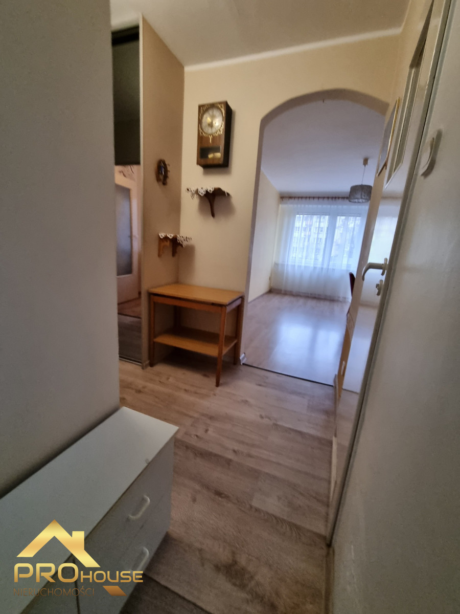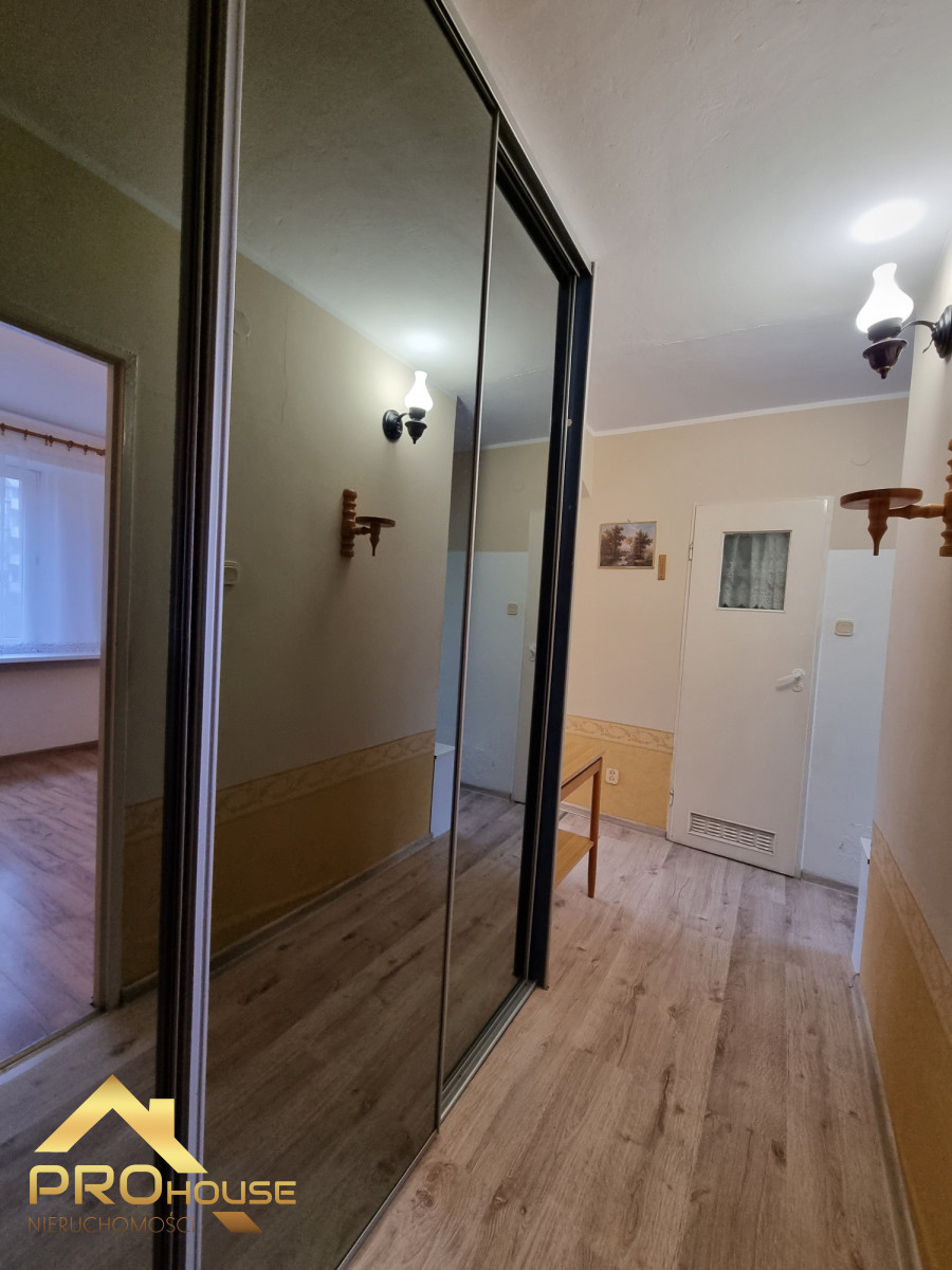 Lokal składa się z salonu (dużego pokoju), małego pokoju (sypialni), przedpokoju i łazienki oraz kuchni.