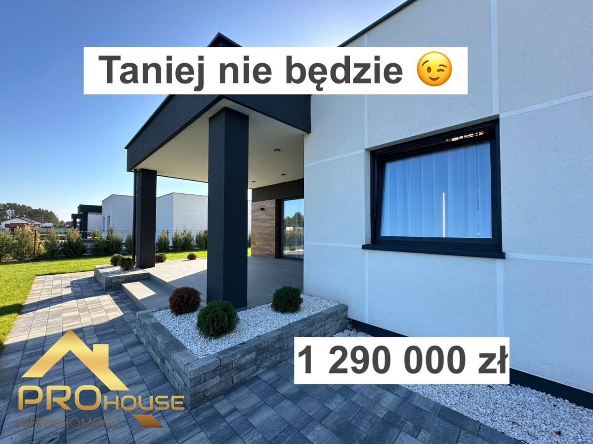 Na wyposażeniu domu w cenie: duża nowoczesna lodówka, piekarnik, mikrofalówka, pralka, suszarka, zmywarka, telewizor, umeblowanie salonu, kuchni i garderoby. Wnętrza są bardzo estetycznie wykończone i przytulne. W salonie mieści się efektowny kominek. Dom jest w pełni wyposażony w bardzo dobrej jakości przedmioty, gotowy do zamieszkania. Wykończono go z dbałością o każdy najmniejszy szczegół. W budynku zastosowano ciekawe doświetlenia ledowe.