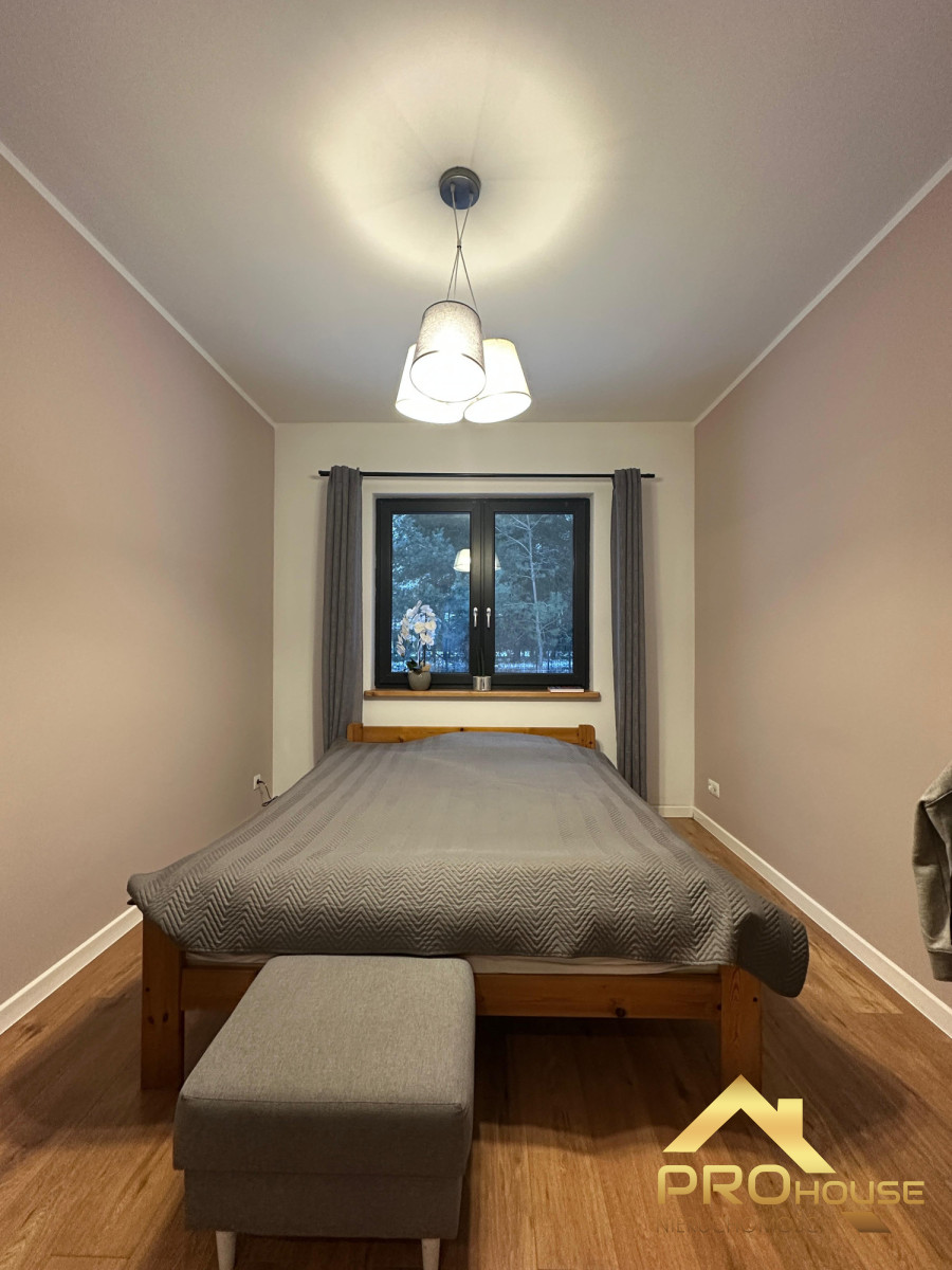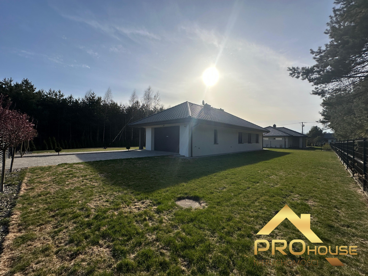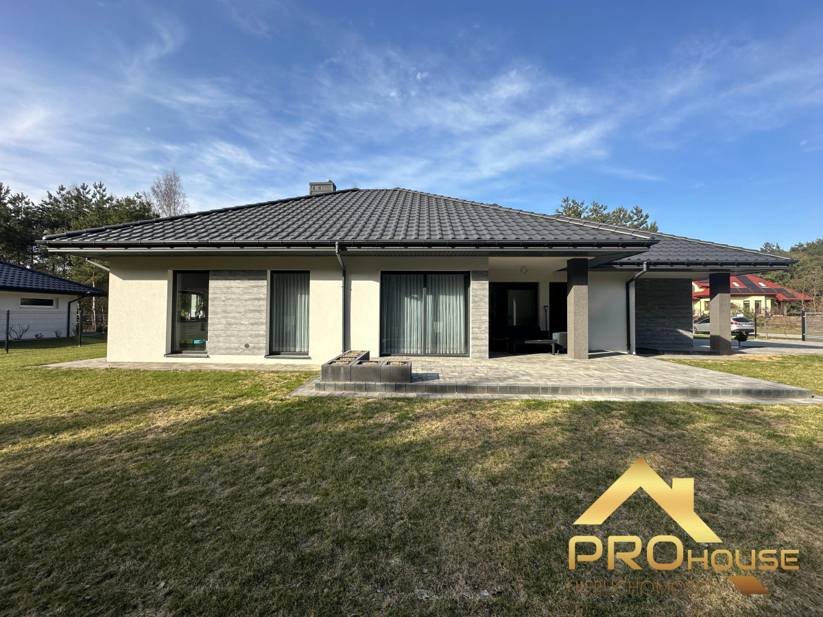 To prawdziwa perełka — za płotem rozciąga się sosnowy lasek, który zapewnia prywatność i wyjątkowy klimat przez cały rok. W ogrodzie czeka idealnie utrzymana trawa z automatycznym nawodnieniem, tworząca piękną, zieloną przestrzeń do wypoczynku.