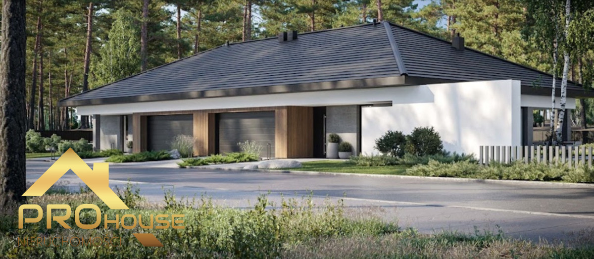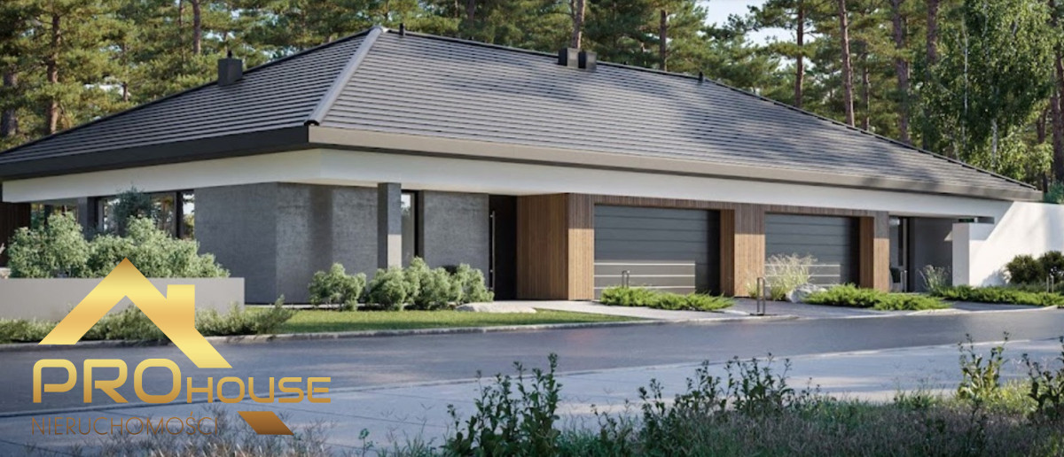 Parterowy dom w zabudowie bliźniaczej z dwustanowiskowym garażem o łącznej powierzchni 142,63 m² + użytkowe poddasze.